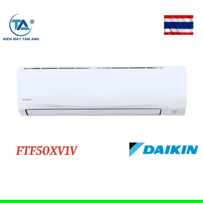 Điều hòa Daikin 1 chiều 18000BTU FTF50XV1V nhập khẩu chính hãng Thái Lan trên dây truyền công nghệ hiện đại, tiên tiến. Đây là model thuộc phân khúc tiêu chuẩn, giá rẻ của Daikin có giá cả phù hợp. Máy điều hòa có thiết kế đặc biệt nhờ có thiết kế Flat Coanda điều chỉnh hướng gió tránh phả trực tiếp vào người dùng. Toàn bộ máy bảo hành chính hãng 12 tháng, riêng máy nén bảo hành 5 năm.