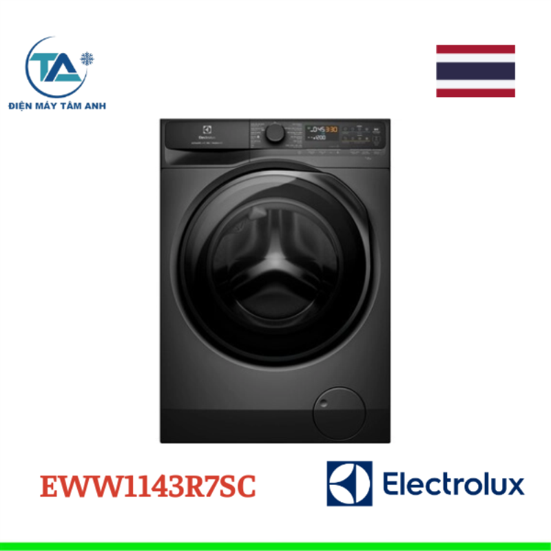 Máy giặt sấy Electrolux Inverter Giặt 11Kg + sấy 7Kg EWW1143R7SC máy giặt cửa trước với kiểu dáng hiện đại, bảng điều khiển song ngữ tích hợp núm xoay, cảm ứng và màn hình hiển thị dễ theo dõi.