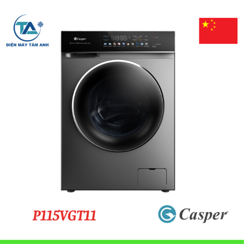 Máy giặt sấy Casper Inverter giặt 11.5 kg - sấy 8 kg WF-P115VGT11 tích hợp giải pháp giặt sấy 2-in-1 giúp tiết kiệm không gian, thời gian và công sức. Chỉ với một lần thao tác, quần áo sẽ được giặt sạch và sấy khô hoàn toàn, sẵn sàng để mặc ngay. Chính vì thế, người dùng không cần phải tốn công phơi đồ, cực kỳ hữu ích trong những ngày mưa hoặc thời tiết ẩm ướt.